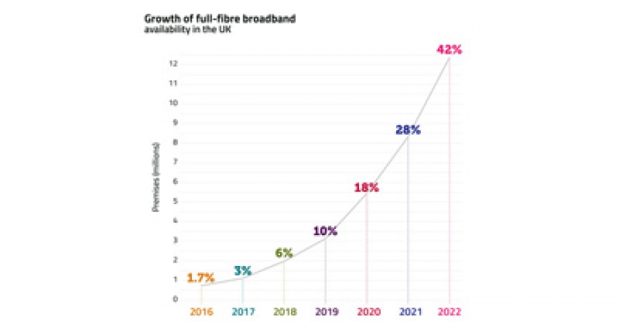 به گزارش گروه اخبار خارجی آژانس خبری فناوری اطلاعات و ارتباطات، رگلاتور مخابرات بریتانیا، آف کام نسخهی 2022 گزارش سالانه خود را روز پنجشنبه منتشر کرد که دسترسی پذیری به باند پهن فیبر کامل اکنون از چهل و دو درصد خانوارهای بریتانیا یا حدود 12.4 میلیون نفر عبور کرده است. این افزایش 4.3 میلیون خانوار طی 12 ماه به بزرگترین نرخ رشد سالانه بازار تا به امروز تبدیل شده است.